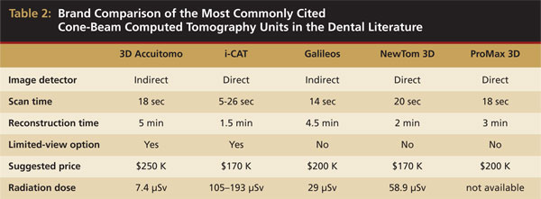First, the purchase of a CBCT unit, which can cost more than $150,000, must be justified. With each scan costing the patient $300 to $600, enough scans must be performed to recover the cost of the equipment. In addition, indirect costs, such as data storage, staff training, time, and space, also must be considered. Scheduling changes also may be required. With several patients seen each day, an office with only one or two staff members may experience CBCT scanning as a constant interruption to treatment time.
