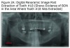 The initial panoramic radiograph exposed on August 5, 2009 revealed evidence of caries on the distal of #18 (Figure 1). Treatment options including root canal therapy or extraction were discussed with the patient. For the prevention and management of BON in patients at risk, the American Academy of Oral Medicine has developed clinical guidelines.5 The patient was informed of the risk of developing BON post extraction. After considering the risks the patient elected extraction of #18; this was accomplished by his private dentist in September 2009, prior to stem cell transplant. Panoramic radiographs reveal the status of tooth #18 before the extraction (Figure 1) and an area of bony changes about 18 months after the extraction (Figure 2A, Figure 2B).