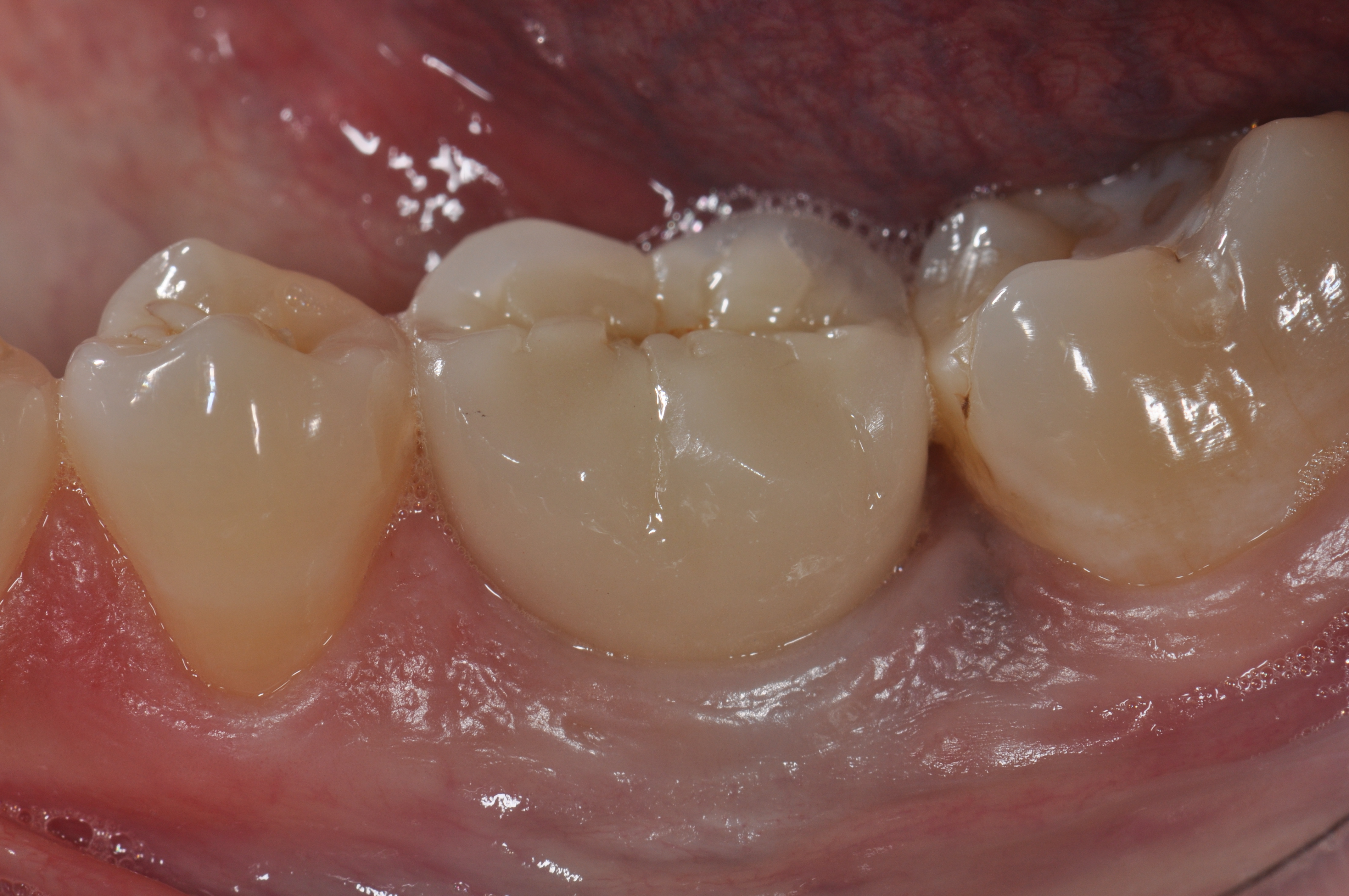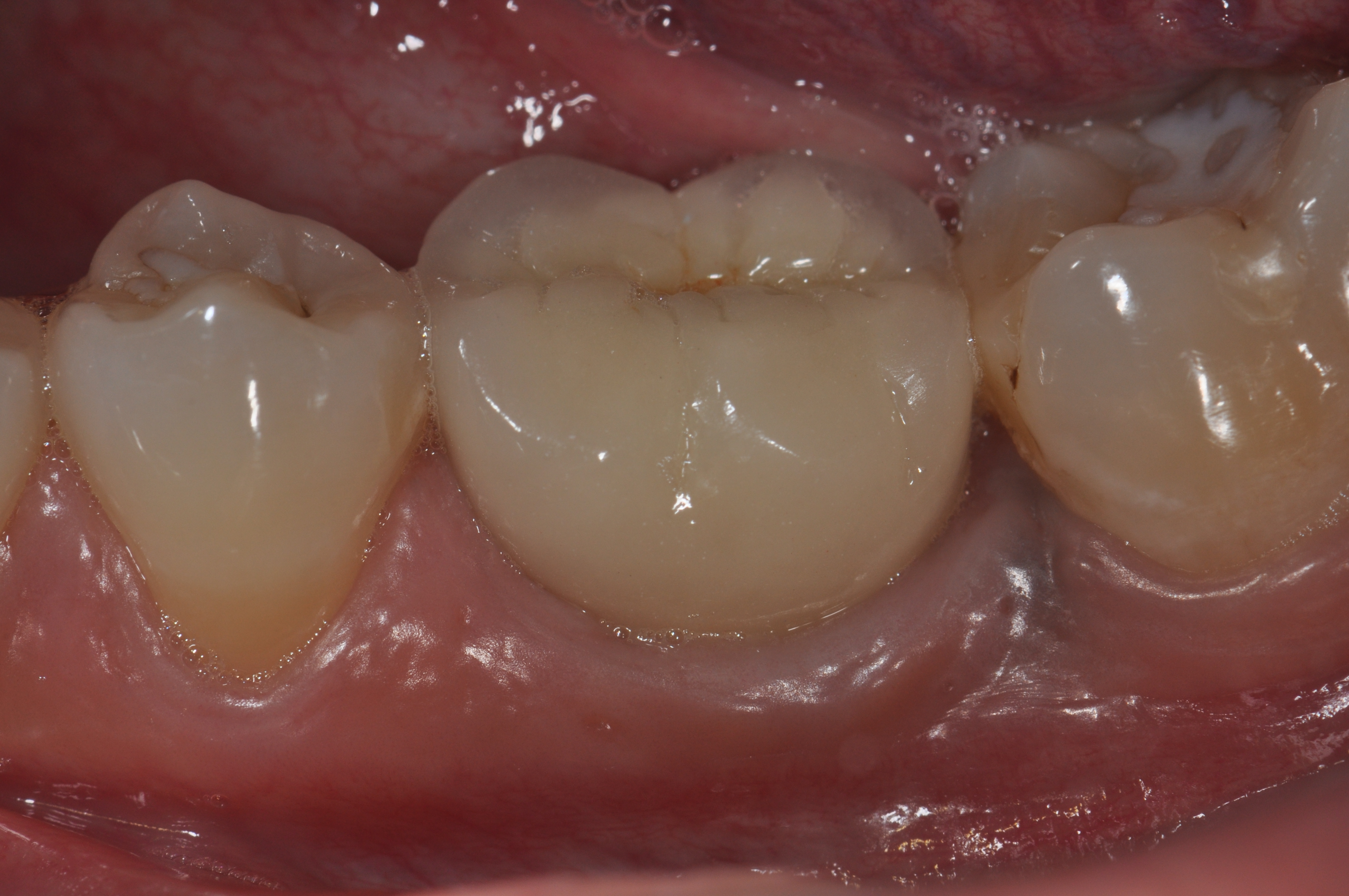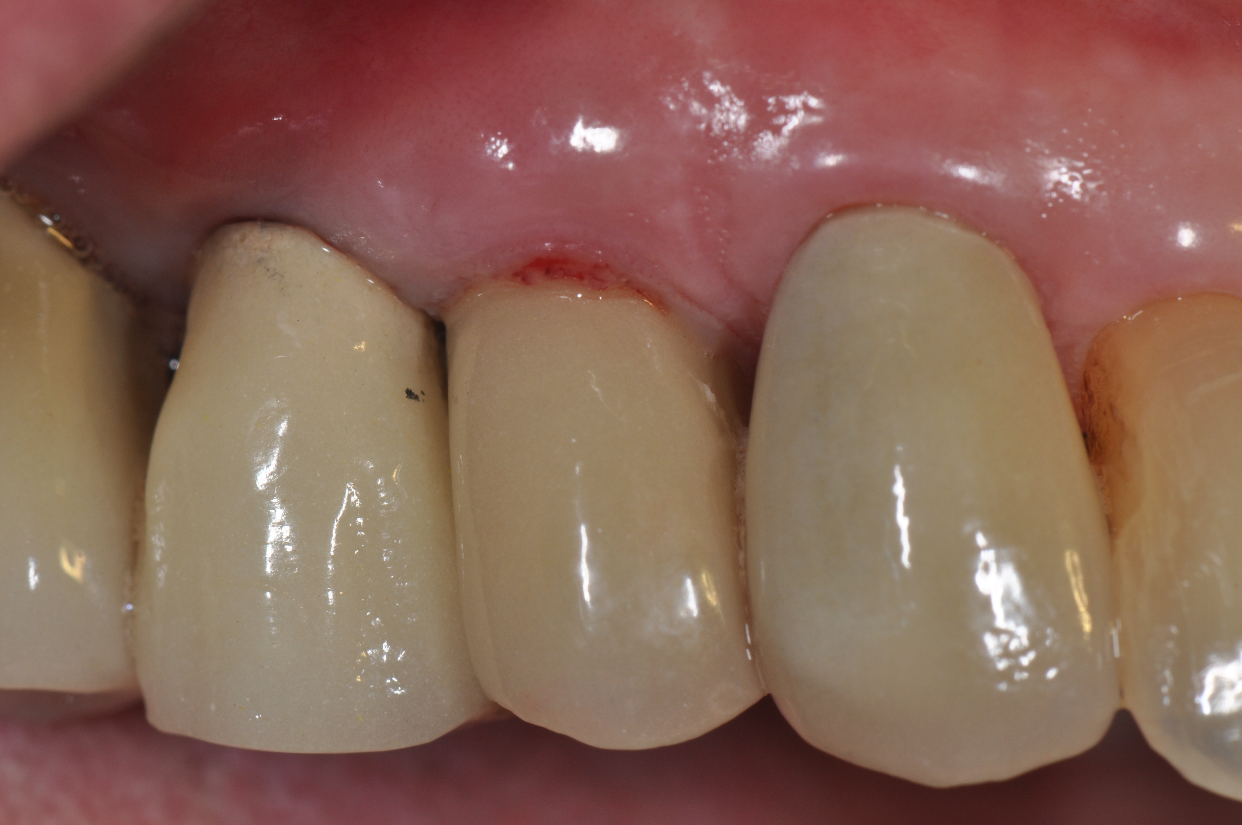 Initial probing of the implant should be done once the final restoration has been inserted and can be done with either a plastic or metal periodontal probe. The key to consistency is to use light force with the same type of probe. Probing depth should be recorded and defined as the depth of probe penetration from the base of the implant sulcus to the crest of the gingival tissue surrounding the implant. Similar to assessment around natural teeth, the level of the crestal soft tissue can be measured using a fixed reference point on the restoration and should be recorded as the clinical attachment level.