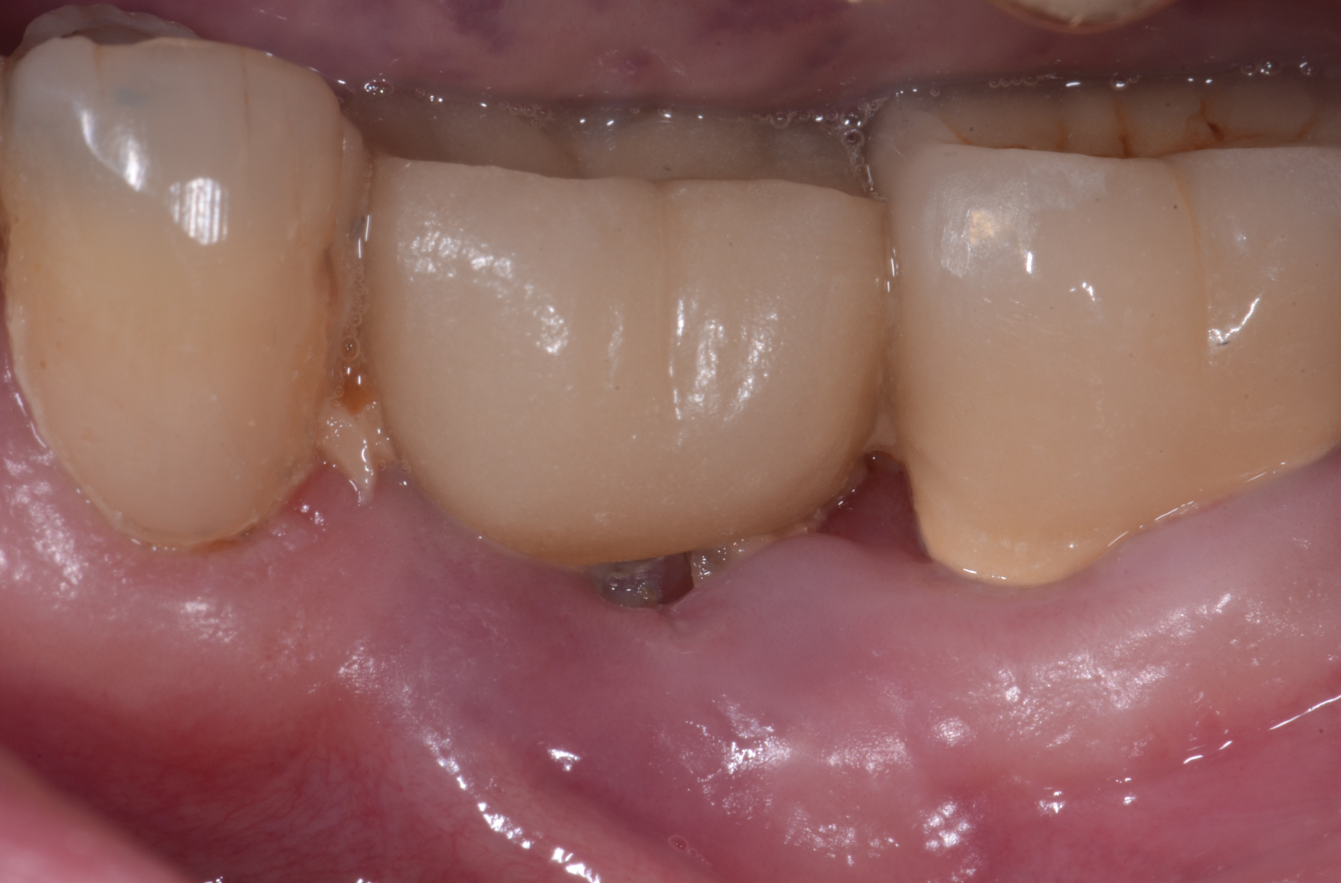 Treatments aimed at controlling inflammation and infection and limiting biologic complications for peri-implant mucositis and peri-implantitis, respectively, are identical to those that have been found to be effective for gingivitis and periodontitis, respectively. Similar to gingivitis, when detected early peri-implant mucositis can be successfully treated with effective nonsurgical efforts aimed at elimination of the biofilm from the implant surface21,23,24 (Figure 5 through Figure 7), such as supportive periodontal therapy and mechanical nonsurgical treatment.