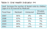 Medicaid utilization for this age group remained stable, averaging 85%, while the uninsured averaged 9%, and privately insured averaged 6%. The goal to increase the percentage of dental visits by children (ages 6 to 9) insured by Medicaid receiving any dental service in a measurement year was not met, showing a 2% decrease in Medicaid from measurement year 1 to year 5, and a 2% increase in uninsured during this same measurement period.