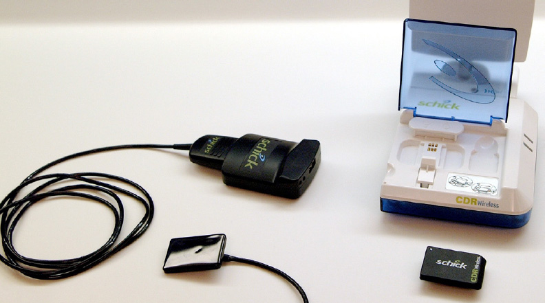 Direct imaging systems use a sensor. This device is sized about the same as traditional dental film, except it is thicker and rigid. The placement of sensors is a bit different than conventional film. Based on the manufacturer of the sensor, there may be one size of sensor or multiple sizes to choose from. Once the sensor is placed in the oral cavity and exposed, the image appears in the software within seconds (Figure 1).