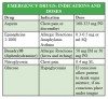 A card that clearly states the indication, dosage, and administration of the drugs in the kit should be taped inside the lid. In an emergency situation, infrequently used doses can easily be forgotten. Each of the drugs listed is available in prefilled syringes so that no time will be lost drawing drugs up in syringes. A sample emergency drug card is shown in Figure 28. The drugs in the kit should be kept simple, as their purpose is only to handle life-threatening problems until the rescue squad arrives.