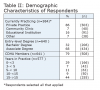 Of the 6,248 dental hygienists whose email addresses were in the CDHA database, 751 responded to the online survey, yielding a response rate of 12%. Almost all (91%) of the respondents were currently practicing. Most respondents reported graduating from an associate degree program, practicing in a private dental office, and were either early in their career (0 to 3 years), or had been practicing for over 15 years (Table 2).