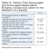 Factors that discouraged respondents from bringing suspicious lesions to the attention of the dentist were primarily related to the dentists’ behavior: for example, not referring a lesion for biopsy that the dental hygienist felt was suspicious (Table 6). Few respondents experienced patients becoming upset. The facilitating factors, ones that encouraged respondents to bring a suspicious lesion to the attention of a dentist, were the personal experiences of the respondents. More than half the respondents knew a patient with a history of oral cancer or had detected a cancerous lesion in the past.