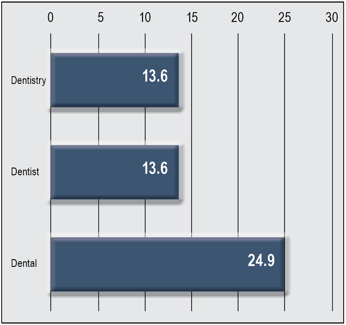 Although the target demographic uses the Internet, knowing whether this group is seeking dental-related information is critical. Analytics on global search terms for June 2016 show that about 52 million people globally searched for either “dentistry,” “dentist,” or “dental,” illustrating that not only is the target audience online, but that potential patients are indeed looking for information on dentistry (Figure 2).2