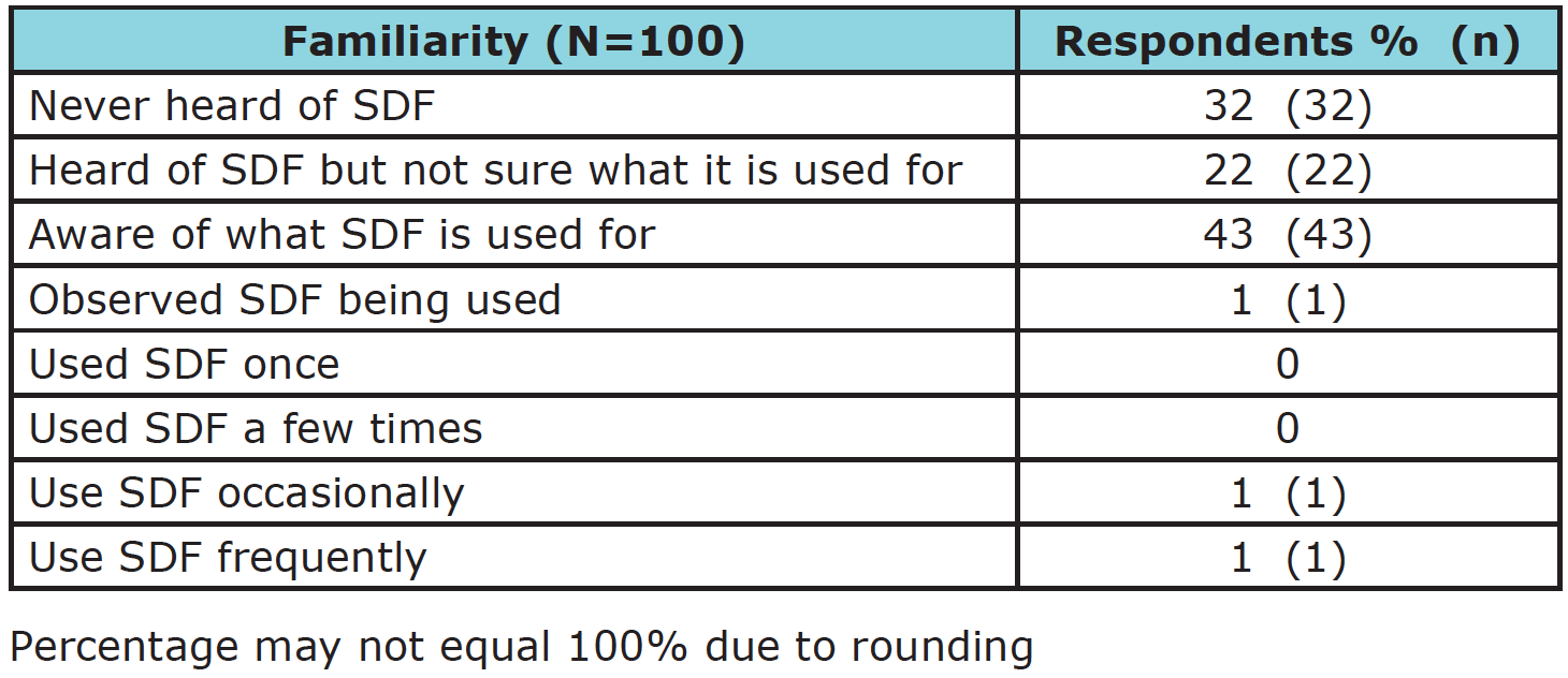 Respondents’ demographic information and level of familiarity with SDF