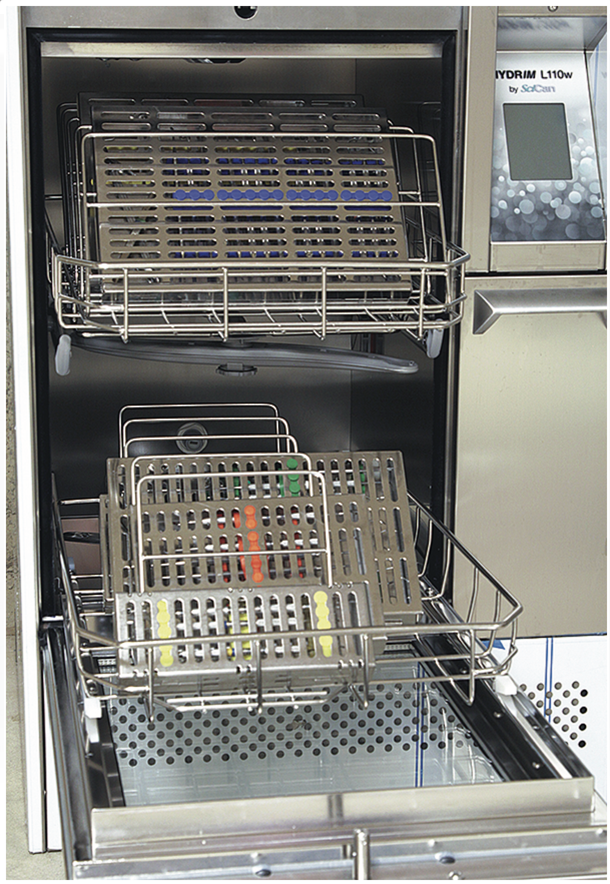 Virtually all commercially available cassettes are perforated cassettes; these are preferable to containers that are completely solid. Solid cassettes may not allow steam or chemical vapor to reach the contents for sterilization to occur. Additionally, cassette perforations allow thorough ultrasonic or instrument washer cleaning. Other features to consider would be instrument rails, strips, holders, or racks inside the cassette that are used to hold instruments in place. If these are made of soft material, they may decrease scratching on the instrument surfaces. Also, check to see if the holding devices provide adequate space between instruments to allow easy access during instrument cleaning prior to heat sterilization. A study performed at The Dental Advisor demonstrated that a single instrument washer or ultrasonic unit cleaning cycle was able to completely remove bioburden coated and dried onto instruments and cassette rails.3