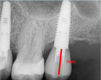 The author teaches "restorative address 73-422," a metaphorical street address, as the best method to help navigate an implant start to finish, where each number corresponds to a significant measurement. These measurements can be viewed by looking at the cross-section of a cone-beam computed tomography (CBCT) scan. The first number in the address, "7," represents the distance that the restorative platform should be from the desired occlusal table (Figure 1). An abutment 5 mm in length will minimize the chances of the restoration dislodging from the abutment. Then, above coronal to the abutment, there should be 2 mm of restorative material to ensure a strong restoration that will not fracture or break. Together, the abutment length of 5 mm plus the 2 mm of restorative material equals 7 mm. If the distance between the restorative platform of the implant abutment and the desired occlusal table is less than 7 mm, it will be difficult to mask out the screw-access hole and may result in an unsightly gray dot in the middle of the implant restoration (Figure 2). If the distance is slightly greater than 7 mm, that is acceptable, but it should not be less.
