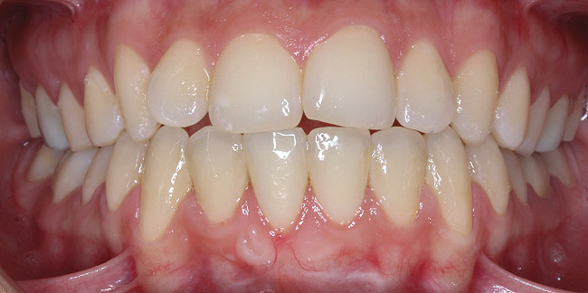 It should be understood that this type of orthodontic movement requires reinsertion of a fixed orthodontic appliance in the lower arch for several months. Therefore, many of these patients reject retreatment. In such cases, surgical root coverage remains the only viable option; however, patients should be aware of the poor prognosis for complete root coverage and be prepared to accept compromised treatment outcomes (Figure 9 through Figure 11).
