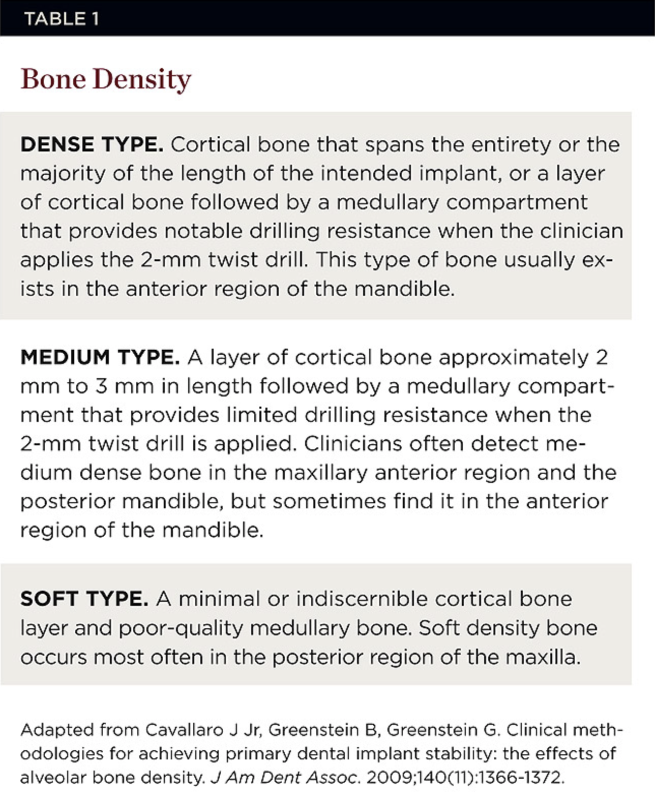 7. Cavallaro J Jr, Greenstein B, Greenstein G. Clinical methodologies for achieving primary dental implant stability: the effects of alveolar bone density. J Am Dent Assoc. 2009;140(11):1366-1372.