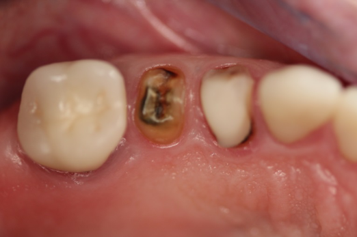 A patient presented to the dental practice with multiple root fractures, recurrent caries, and a need for significant crown-lengthening procedures, endodontic therapy, post and cores, and long-term restorations. The patient considered the entire volume of therapy and was not interested in undergoing treatment with less than a satisfactory long-term prognosis. The patient was given two dental-implant options and chose to move forward with ceramic dental implants.