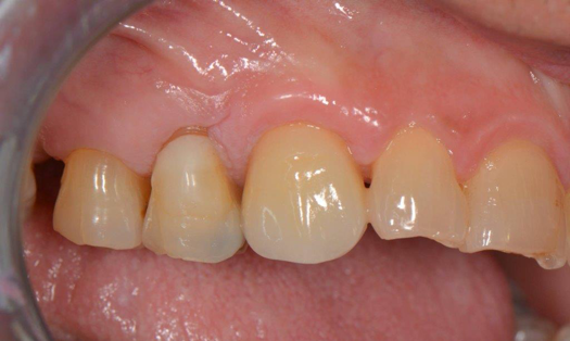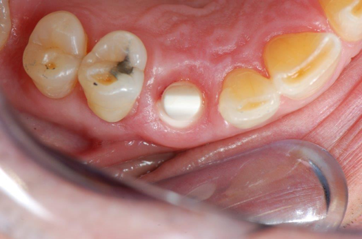 Figure 23 showed an example of gingival soft tissue creeping occlusally and over the lingual gingival margin of the one-piece ceramic dental implant. This supragingival migration was caused by the exceptional biocompatibility due to the acid-etched surface of the implant, a one-piece implant that prevents bacterial colonization that one may find with two-piece metal-implant systems.
