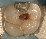 Micro-access preparations appear to be the trend right now. These significantly smaller access openings make the preservation of 1 mm of coronal dentin a higher priority than improving efficiency and increase the incidence of missed canals and separated files due to lack of visibility and lack of relief for coronal curvatures (Figure 4 through Figure 12). Basically, for preserving an additional millimeter of tooth structure on the access outline form, the procedure becomes more complicated and less predictable while increasing the overall chair time. Furthermore, scientific evidence does not exist to demonstrate what, if any, clinically significant benefit we gain for the additional millimeter of dentin we preserve. We do know that it will make exploration, instrumentation, and irrigation more difficult, however. Micro-access preparations complicate the root canal procedure unnecessarily, and for the complexity they introduce, the proponents do not validate any improvement in case outcome at the present time.