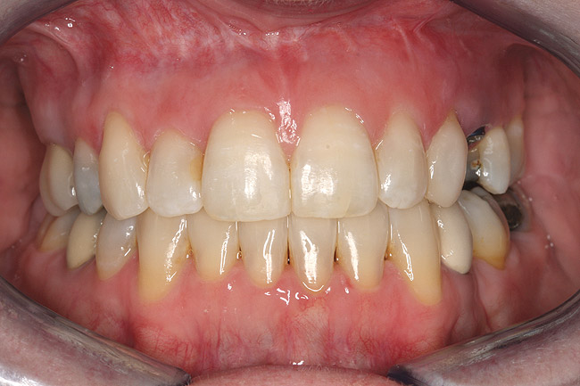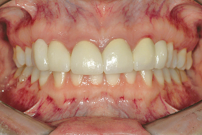 Four case reports illustrate various principles of SFOT. Case 1 (Figure 2 through Figure 9) involves a patient with some complex anterior restorative needs that required dentoalveolar correction. Maintaining esthetics during treatment and minimizing the length of time of orthodontic therapy were primary concerns. This was a perfect indication for corticotomy. The dentition was restored optimally to a stable result after only 5 months of restorative-driven orthodontics. Case 2 (Figure 11 through Figure 13) also used corticotomy but illustrates some of its limitations. The technique facilitated reopening of first premolar extraction sites to enable optimal restoration on the worn dentition and correction of the insufficient lip support. The patient ideally needed alveoloskeletal correction, and the corticotomies facilitated only dentoalveolar correction with excessive tipping. Osteotomy would have been a better choice.