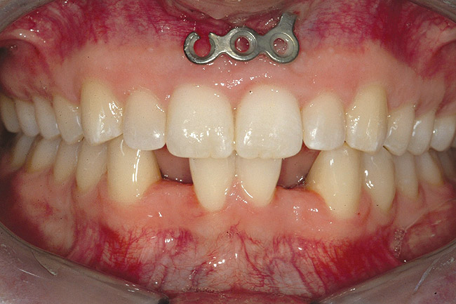 The most widely known benefit of the modern SFOT procedures is faster tooth movement; some claim three to four times quicker than traditional orthodontic tooth movement.8 Shorter treatment time might be motivation for the patient; however, the interdisciplinary team should consider these techniques as a means for expanding the traditional boundaries of orthodontic therapy and providing viable solutions to problems that previously were very difficult, at best, to correct. More importantly, these procedures can modify the dentoalveolar complex so that the teeth, alveolar bone, and skeletal components can be appropriately addressed for maximizing ideal functional and esthetic relationships. In addition, these techniques also could reduce root resorption9 and provide a more stable result than traditional cell-mediated tooth movement alone.10 SFOT provides a viable option for addressing adult alveolar bone volume deficiency problems to create broader, more robust dental arches similar to what has been observed in ancient skeletons from prior to our modern refined diet. (Please see Origins of Dental Crowding and Malocclusions: An Anthropologic Perspective in the June 2009 Compendium.) In addition to correcting numerous interdisciplinary dental-facial problems, these arches also are perceived as more esthetically appealing in modern society.11