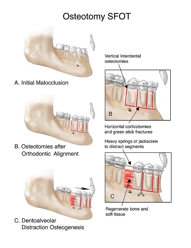 In this review, exciting new concepts were presented that address dentoalveolar and alveoloskeletal discrepancies using corticotomies, interdental osteotomies, dentoalveoalar distraction osteogenesis, and active orthodontics. These techniques have significantly changed the way many providers diagnose and treat. SFOT procedures are likely to gain greater acceptance as more clinical evidence emerges and more refined protocols become available.