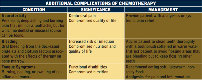 - Oral Complications of Cancer Treatment: What the Dental Team Can Do
