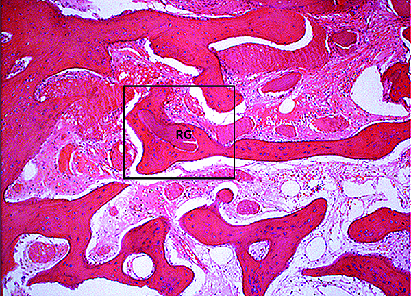 Twelve to 16 weeks after the initial surgery (average 14.2 weeks), each patient presented for dental implant placement. While preparing the previously grafted sites for implant insertion, a 2-mm trephine core sample was taken from each surgical site prior to completion of the final drilling sequence. The trephined bone cores were submitted to the University of Missouri–Kansas City School of Dentistry for histologic examination.