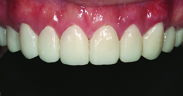Using the combination of laser-assisted gingival surgery and the osseous crown-lengthening technique, the patient’s high, gummy smile was amended and osseous removal was minimal compared with the outcome that would have likely been achieved had the patient undergone Le Fort I osteotomy. Use of these techniques and options resulted in quick healing time for the patient, and after 3 days, accelerated healing was already realized (Figure 21).