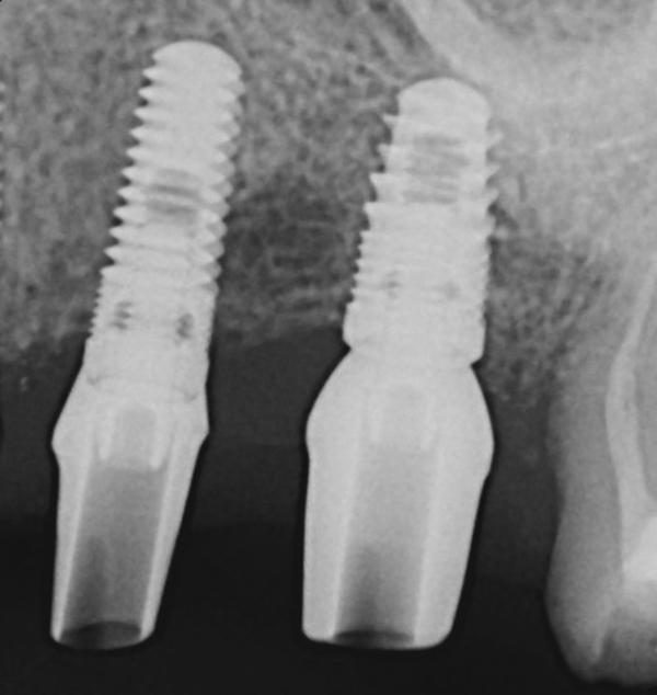 If poor primary stability exists after implant placement, several options can be used to improve the situation. The osteotomy can be deepened if apical bone is available, or a wider implant may be used if bone and space are present.66,67 Clinicians can also consider removing an implant and adding bone to the osteotomy with an amalgam carrier, condensing the bone, and then placing the implant.68 However, an osteotome or drill (not moving) one size smaller than the implant needs to be placed into the osteotomy to condense bone laterally and create an orienting space for implant insertion. When dealing with a spinner, it is prudent to submerge the implant and allow it to osseointegrate for 3 to 6 months before loading it.69-71