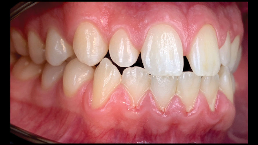 One of the main advantages that smartphone cameras have over DSLR cameras is that nearly everyone is already very familiar with the technology; therefore, the incorporation of these devices into everyday practice does not require learning a new and unfamiliar skill set. The task of producing a series of high-quality clinical photographs for routine examinations (Figure 8), esthetic treatment planning (Figure 9 through Figure 11), or specialty care (Figure 12 and Figure 13) can be delegated with confidence to any staff member during the patient's initial office visit and will generally require less than 5 minutes of time to complete. When a DSLR camera is used, evaluation of the intraoral images either takes place on the small viewfinder built into the camera or necessitates the physical removal of the memory card from the camera to downloaded the images onto a computer for review. An added bonus of smartphone dental photography is that the phone's screen now replaces the much smaller viewfinder of a DSLR camera and provides the clinician with the ability to view and zoom into the patient images on a 5- to 6-inch, high-definition display.
