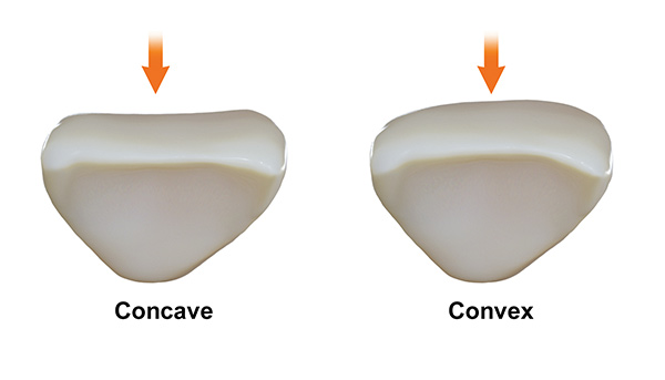 When viewing the tooth from an incisal perspective, if the facial contour between these transitional line angles is concave, the tooth will appear thinner. If the facial contour between these transitional line angles is convex, the tooth will appear wider (Figure 5).