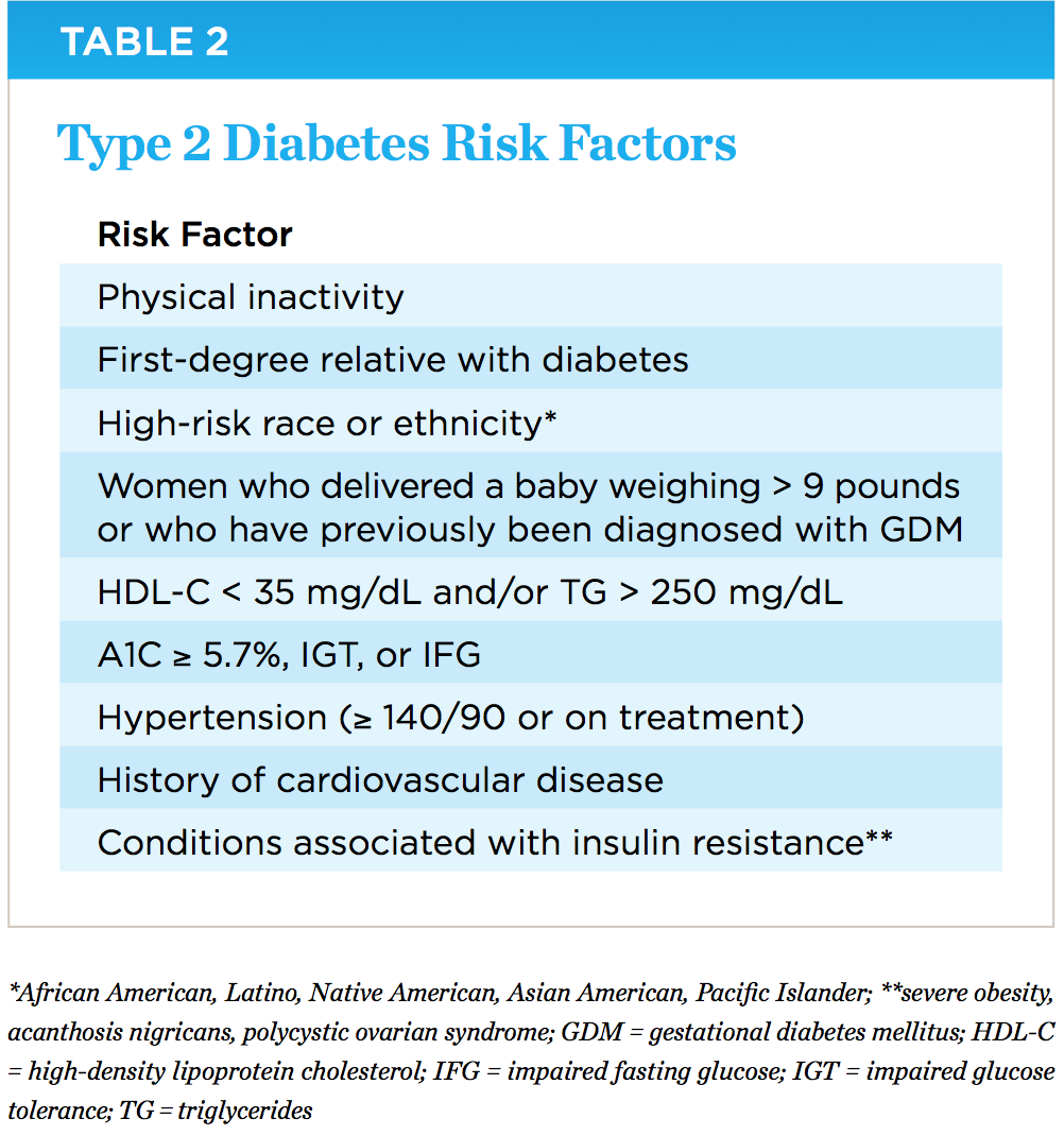 Due to the prevalence of diabetes and the toll it takes on public healthcare costs, the American Diabetes Association recently suggested guidelines for type II diabetes and prediabetes screening in asymptomatic adults.26 Screening should be performed in adults of any age who are overweight or obese, and who have one or more diabetes risk factor (Table 2). With CIPD being a recognized complication of diabetes, it seems reasonable to screen every patient presenting to the dental office with evidence of CIPD. Testing should begin at age 45 and, if the test is normal, repeated at least every 3 years.