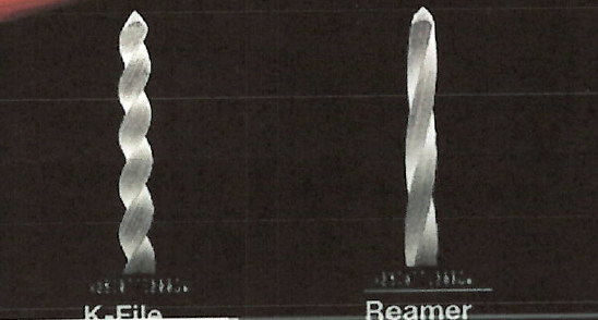 K-files, which feature 32 horizontal flutes used in a watch-winding motion, are commonly used to create glide paths. The file compacts debris apically on the downstroke and shaves on the upstroke, straightening curved canals. Use of K-files can result in excessive engagement with the canal walls, and sometimes offers poor tactile sense, potentially producing ledges.12 Figure 7 shows the differences between a K-file and a reamer. Reamers offer more benefits. The number of flutes is far fewer and they are more vertically oriented, resulting in less engagement on the canal walls. They also glide down smoother, helping the practitioner more readily achieve the proper length. Figure 8 illustrates an improved reamer, flat on one end, which produces an excellent cutting edge but is more flexible. In a study conducted in 2010, this type of improved reamer demonstrated a greater cutting efficiency than K-files or the standard reamer.13