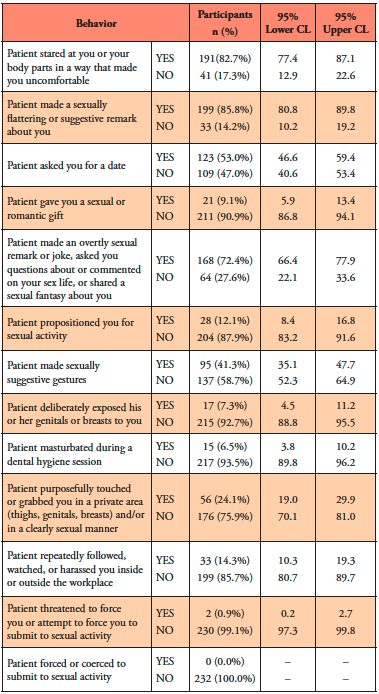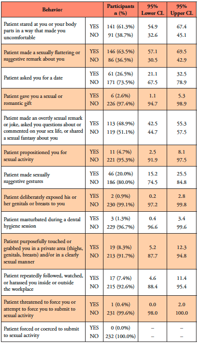 Inappropriate Patient Sexual Behavior in the Dental Practice Setting: Experiences of Dental Hygienists