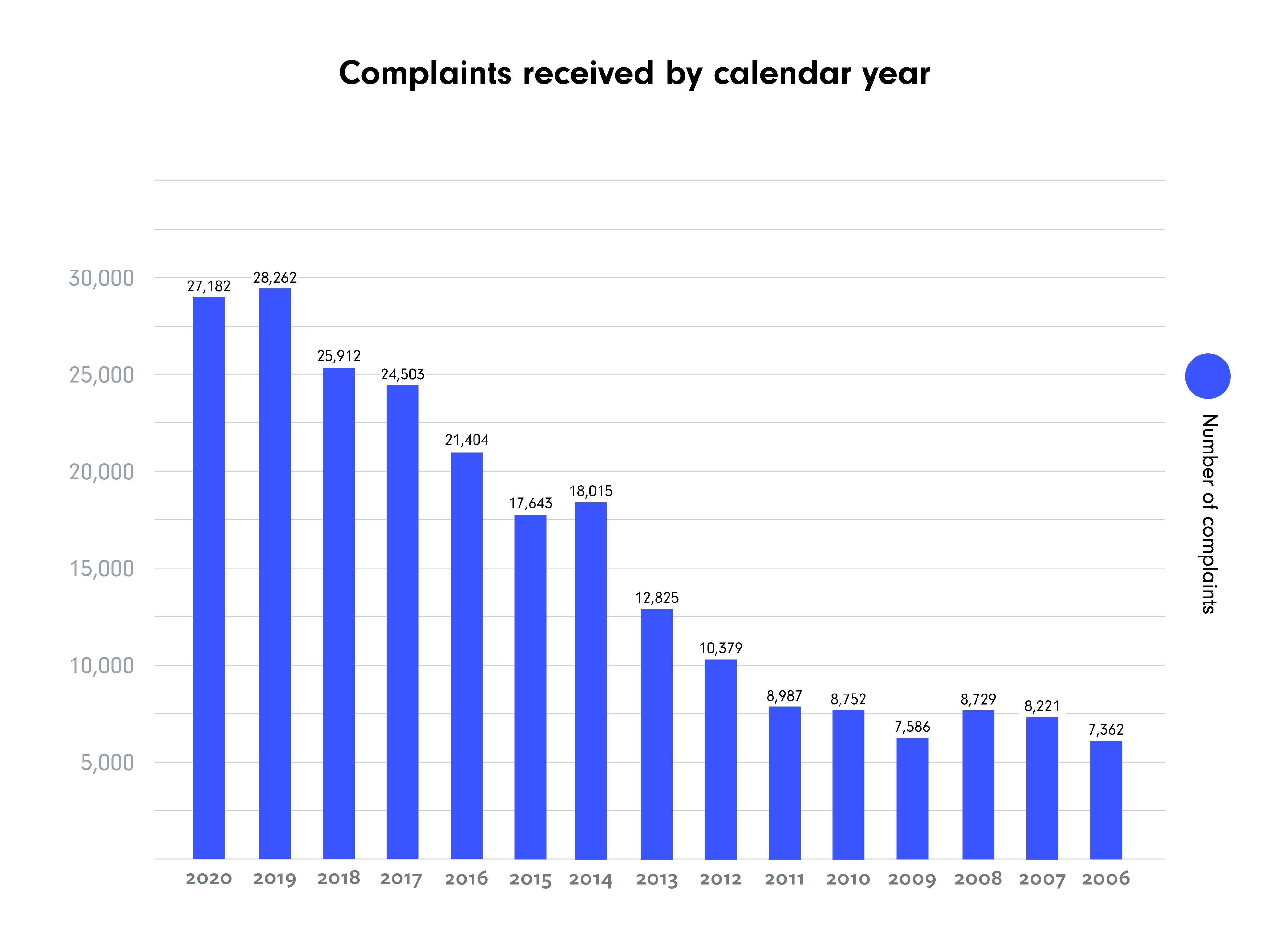 that information (referred to as "protected health information"). HIPAA rules stipulate that medical information and any identifying features about a patient must be stored, transmitted, and communicated securely. This ensures that patients will not have their medical records shared with a third party without their permission. Violation of HIPAA compliance rules can result in hefty fines for those in violation of the rules. The US Department of Health and Human Services (HHS) keeps track of how many complaints around compliance are made each year. Figure 1 shows the number of complaints received by the HHS per year from 2006 to 2020.