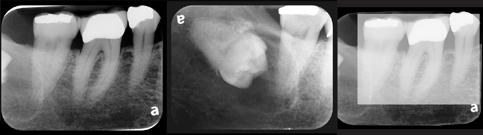 Many clinicians have argued that the 2D diagnostic needs of dental professionals can be satisfied with panoramic rather than PA radiography. The drawbacks of panoramic radiography, when this extraoral modality is used in place of PA radiography, are evident in a number of clinical scenarios where visualization of subtle anatomic clues to pathologic conditions is not readily discernable, including diagnosis of caries and periodontal ligament width abnormalities. Endodontic cases are not easily treated with panoramic radiography because multiple views are necessary in the treatment phase, such as initial view, measurement image of root, master cone placement, and final image of the completed obturation. If a fistula is noted on examination, a gutta-percha point may be inserted into the fistula in order to determine which root or which tooth is infected when a PA pathosis is not easily located.17 Standing the patient upright and directing them away from the treatment operatory to a radiography room where a panoramic unit is located is highly disruptive to workflow, especially if a rubber dam and its associated clamp is in place for treatment.