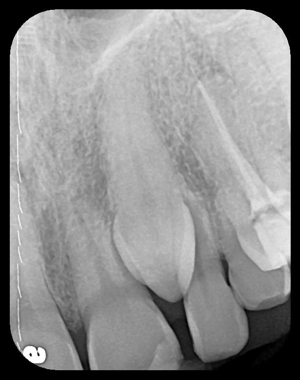In a case where a patient is unable to tolerate the correct placement of an HW sensor, either due to anatomic or behavioral reasons, in a location that will allow viewing the apex of a tooth to receive endodontic treatment, and subsequent post-obturation visits are periodically scheduled to follow the long-term outcome of the procedure, the inability to visualize an advancing PA lesion may constitute a charge of supervised neglect (Figure 11). The definition of supervised neglect is "a situation where a patient's oral health has been allowed to deteriorate over a period of time, despite regular attendances to the dentist who is responsible for the patient's care and treatment."21 Use of easily tolerated PSP radiographs in this instance would likely eliminate the potential legal difficulty by allowing the clinician to properly make the patient aware of any observed pathosis (Figure 12).