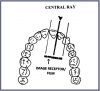 4. Align the central ray perpendicular to the bisector vertically and at the desired interproximal contact to be viewed. Horizontally, the central ray should bisect the central/lateral. (Figure 42) For maxillary exposures, the tube head will be pointed down for positive (+) angulation.