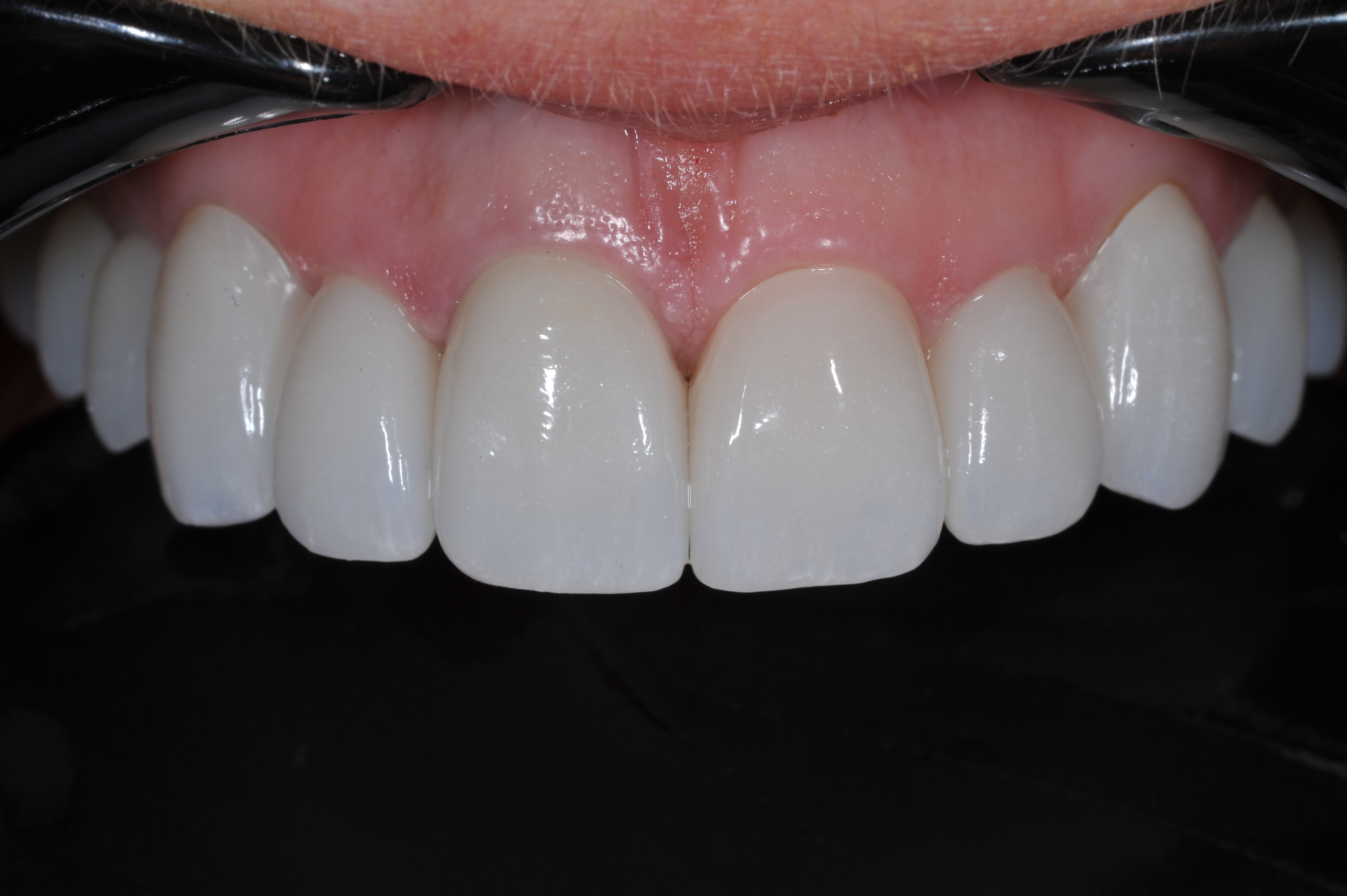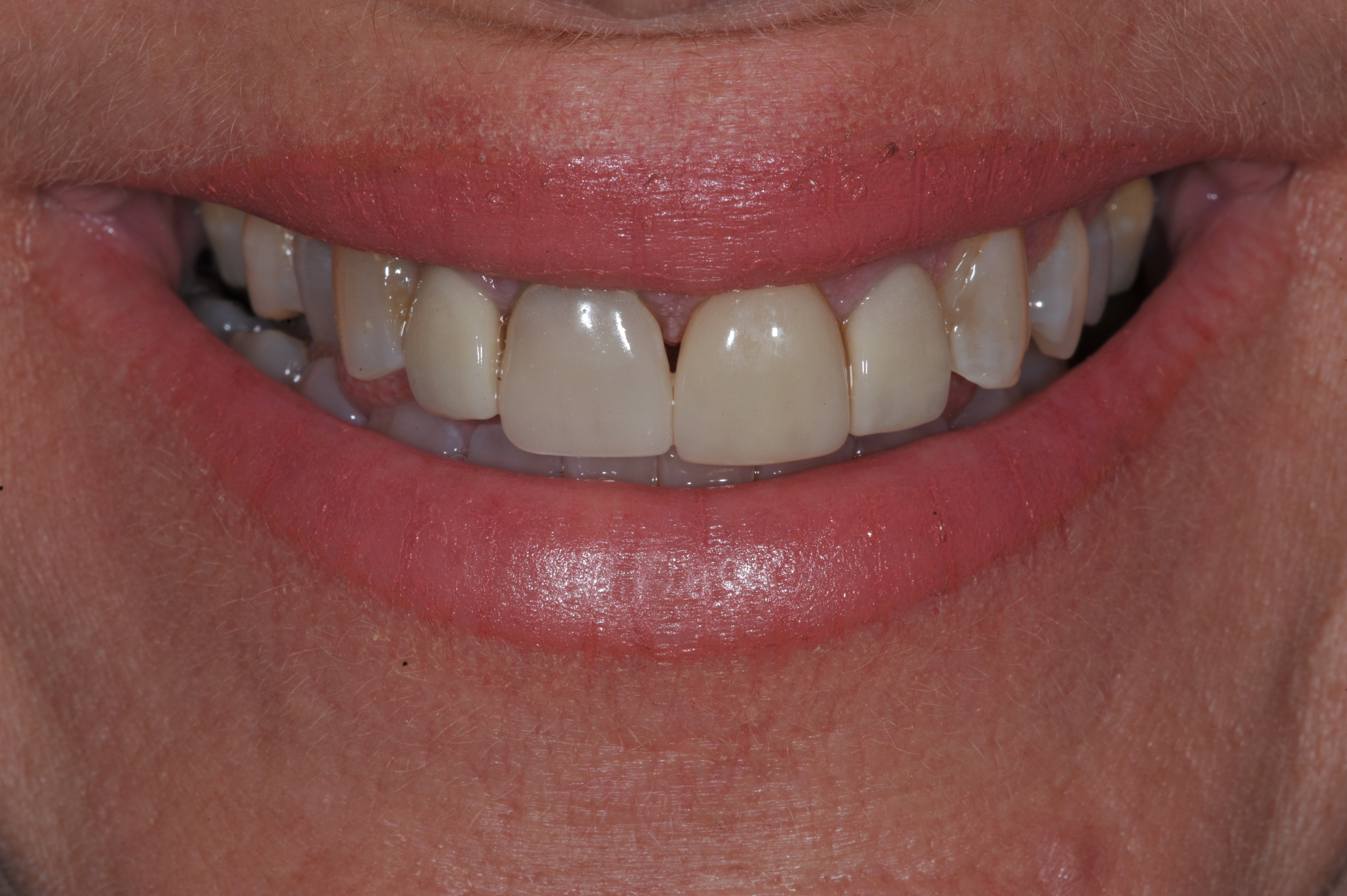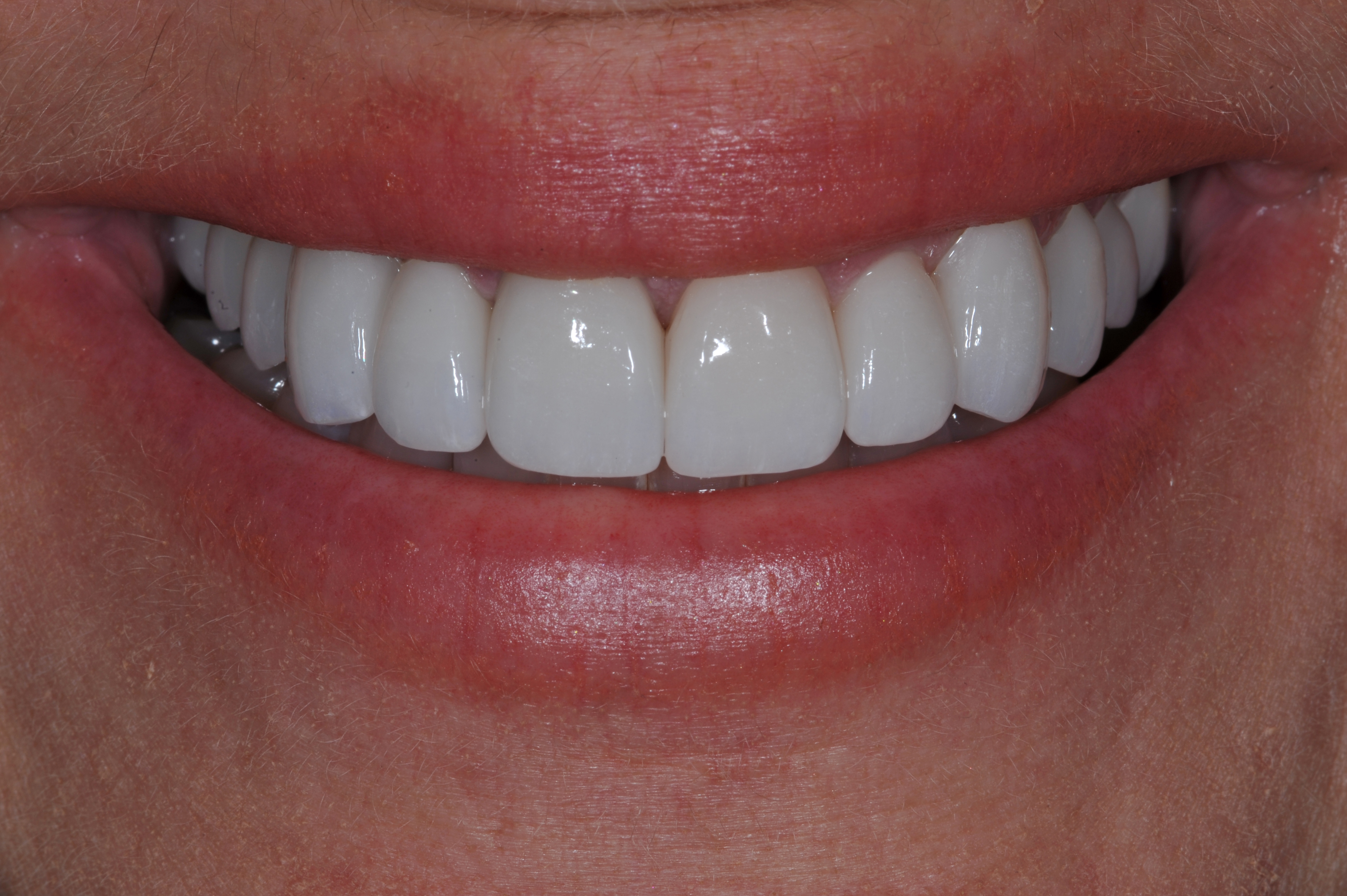 One week after cementation, the soft tissue response is excellent and esthetics acceptable (Figure 15). Patient expectations were met and the work was evaluated at a follow-up appointment. The results are durable, bio-tolerant restorations with the potential for sustained tissue health (Figure 16 and Figure 17).