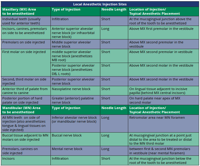 • Before the local anesthetic is administered, address any fears or nervousness the patient may be experiencing.