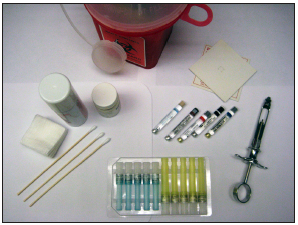 In theory, the administration of local anesthesia should be made under as sterile conditions as possible, just like all other surgical procedures. The fact that it is nearly impossible to achieve sterility in the oral cavity does not relieve the provider of their fundamental responsibility. Care must be taken and everything that can be sterile must be sterile. Injections made into healthy oral tissues virtually never give rise to infection. If the tissue at the injection site or near it is infected, there is a greater risk of spread. Up to this point, the situation is one of necessary compromise, but no compromise is allowable in respect to instruments. The needle, anesthetic cartridge, and syringe must be absolutely sterile. Only 0.00004 ml of infected serum is all that is needed to pass on serum hepatitis. A new sterile disposable needle, a fresh anesthetic cartridge, and a sterile syringe are required for each and every patient.
