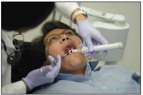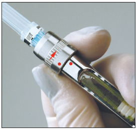 Non-injectable local anesthetics are a more recent development in dental anesthesiology. The U.S. Food and Drug Administration (FDA) approved them for use in adults who need localized anesthesia in periodontal pockets during scaling or root planning. Oraqix® (a lidocaine and prilocaine periodontal gel) is packaged into single-use cartridges and applied directly into the pocket with a blunt-tip applicator and its specially designed dispenser (Figure 4); it is not for injection. With a 2-minute onset and 20-minute duration, it can be applied to one or more periodontal pockets simultaneously. It can be reapplied as needed up to the maximum dosage of five full cartridges at one appointment.9