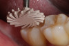 Fig 24. A rubber pre-polishing point is used to smooth the restorative material before the final polishing step with a high luster composite polishing wheel.