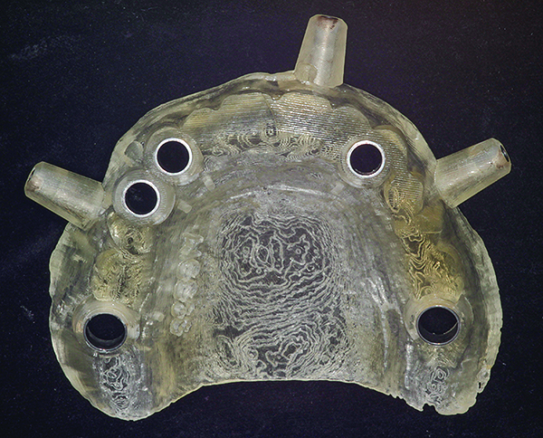 The use of digital dentistry in diagnosis and treatment planning is not new (see American College of Prosthodontists Position Paper on digital dentistry16). For decades, dentists used specialized software to visualize 3D computed tomography (CT) scans of orofacial structures to evaluate skeletal growth; joint pathology; bone architecture; dimensions; vital structures including blood vessels and nerves, sinuses, and impacted teeth; and the presence of neoplasms. Driven by advances in imaging technology and computer power, digital technology is now used extensively in diagnosis and treatment planning of endosseous implants and in maxillofacial surgery.17 A major technological advance was the introduction of cone-beam computed tomography (CBCT).18 Compared to conventional CT scans, CBCT scans offer reduced exposure to x-rays at a reduced cost. Indeed, the total radiation caused by a CBCT scanner is 20% less than that of a helical CT and is approximately equal to exposure from a complete conventional radiographic survey using periapical films.19
