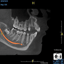 The use of CBCT has been shown to reduce the rate of implant failures.8 Placing a root-form implant into an asymmetrical section of bone can be done more accurately and safely if the location is visualized in 3D prior to placement. The primary advantage of a cross-sectional or coronal view of the bone is that it shows the shape of the anatomy, and any measurements taken from a CBCT image are accurate to 0.1 mm. The placement of an implant to replace a single tooth is far easier to accomplish when the adjacent roots and other important nearby structures, such as the inferior alveolar nerve and the sinus, are identified and measured relative to the desired position of the implant. In addition, CBCT enables an implant to be virtually placed prior to the actual surgery.16 The need for an accurate digital map only increases if a case involves multiple implants or is otherwise more complex (Figure 7). Regardless of the complexity, many clinicians who place implants advocate for the use of surgical guides to aid in precise positioning. This is another important use of CBCT in implant dentistry. Accurate surgical guide fabrication requires a clear and accurate CBCT digital imaging and communications in medicine (DICOM) file to be sent to the party constructing the guide.17