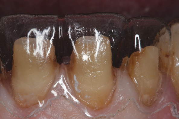 (11.) A clear stent fabricated from the 3D printed wax-up was placed over the prepared teeth to visualize that adequate reduction was achieved.
