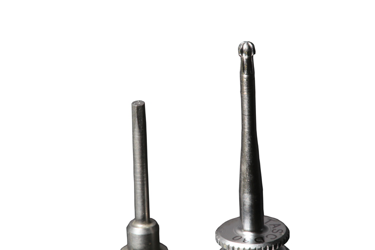 (7.) A specific angulated screw channel ratchet and driver being used to final torque the tooth No. 6 restoration into place. Separate instruments were used for the straight channel restoration.