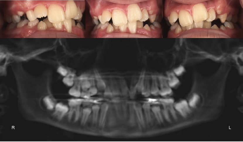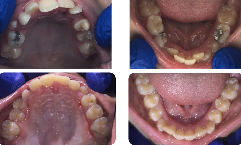 Bicuspid extractions are commonly performed in orthodontic treatment. However, such extractions can lead to a variety of problems, including inadequate space for the tongue. Skeletal & facial discrepancies are noted in the literature when comparing extraction to non-extraction cases with evidence that it does affect the pharyngeal airway size.52,53 In some cases, bicuspid extraction as a treatment approach can be likened to "the shoe is too small so we cut off a toe." Finding alternative approaches to extraction should be a priority for pediatric dentists. In the author's experience, even in some cases of severe crowding, bicuspid extractions were rendered unnecessary because mandibular expansion was utilized instead. In these cases, the parents had been previously offered no other options besides serial extractions of primary teeth followed by removal of all four bicuspids (Figure 1 through Figure 5).