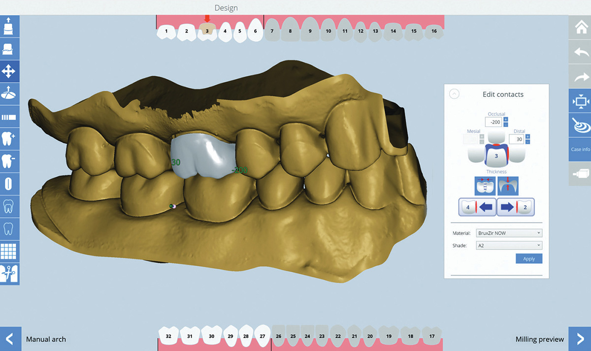 CAD software also includes multiple tools for the clinician to use for the purpose of adjusting the proposed design as desired. For those clinicians concerned about their own skill set, or reluctant to invest time in the design process, the more advanced the AI algorithms at work within their software, the easier and smoother this step is because the proposed design may require little or no adjustment before milling.