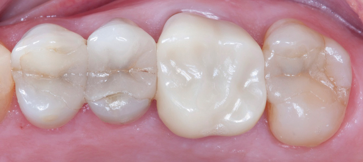 As digital dental technology continues to evolve, a growing number of dental laboratories-and patients-will come to expect the advantages these new methods have to offer. Clinicians today, as they begin the process of incorporating this new technology into their practices, are in an advantageous position: because the technology itself is expanding and developing at such a rapid pace, there is currently no shortage of educational information and research material available to help guide their decisions. This leads to increased confidence in the adoption of these new methods and tools, which in turn leads to excellent case outcomes where digital techniques are put to use. Figure 10 through Figure 12 show a successful digital case study where a fractured all-ceramic restoration on tooth No. 14 was replaced with a fully sintered zirconia crown using a fully digital process, including in-office milling of the restoration.