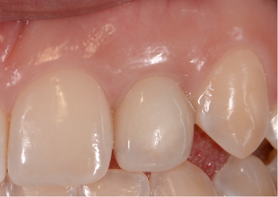 Figure 12 shows the temporary abutment (left panel) after the implant and connective tissue graft were placed, and the patient 2 weeks postoperatively (right panel). Seven years later, the restoration remains sound (Figure 13).