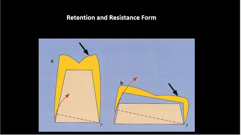 The retention and resistance form of a restoration is one of the most important factors in cementation selection. Depending on the retention and resistance form, which is primarily based on the length and angulation of the axial walls and axial surface area,8 the clinician may have several cement options or, conversely, only a few choices. For example, if a crown preparation has long walls and angulation that is less tapered (Figure 1), there often is much resistance when seating the crown. With this ideal retention and resistance form, there are often many cements that can be used. However, when there is compromised retention and resistance form-for example, with a short preparation with tapered walls-judicious cement selection and choice of technique are critical for the long-term stability of the restoration.
