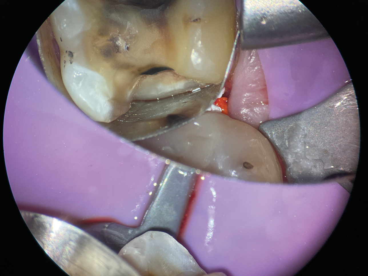 Restoring teeth with deep subgingival margins presents one of the greatest challenges in modern restorative dentistry.1,2These cases are complicated by limited access, the difficulty of achieving effective isolation, and the risk of violating the biologic width. Traditional approaches to addressing deep subgingival margins, such as crown lengthening or orthodontic extrusion, often require invasive procedures that come with significant anatomical and functional compromises, including attachment loss, exposure of root concavities, unfavorable crown-to-root ratios, and inferior esthetics, as well as increased treatment time and patient discomfort.3
