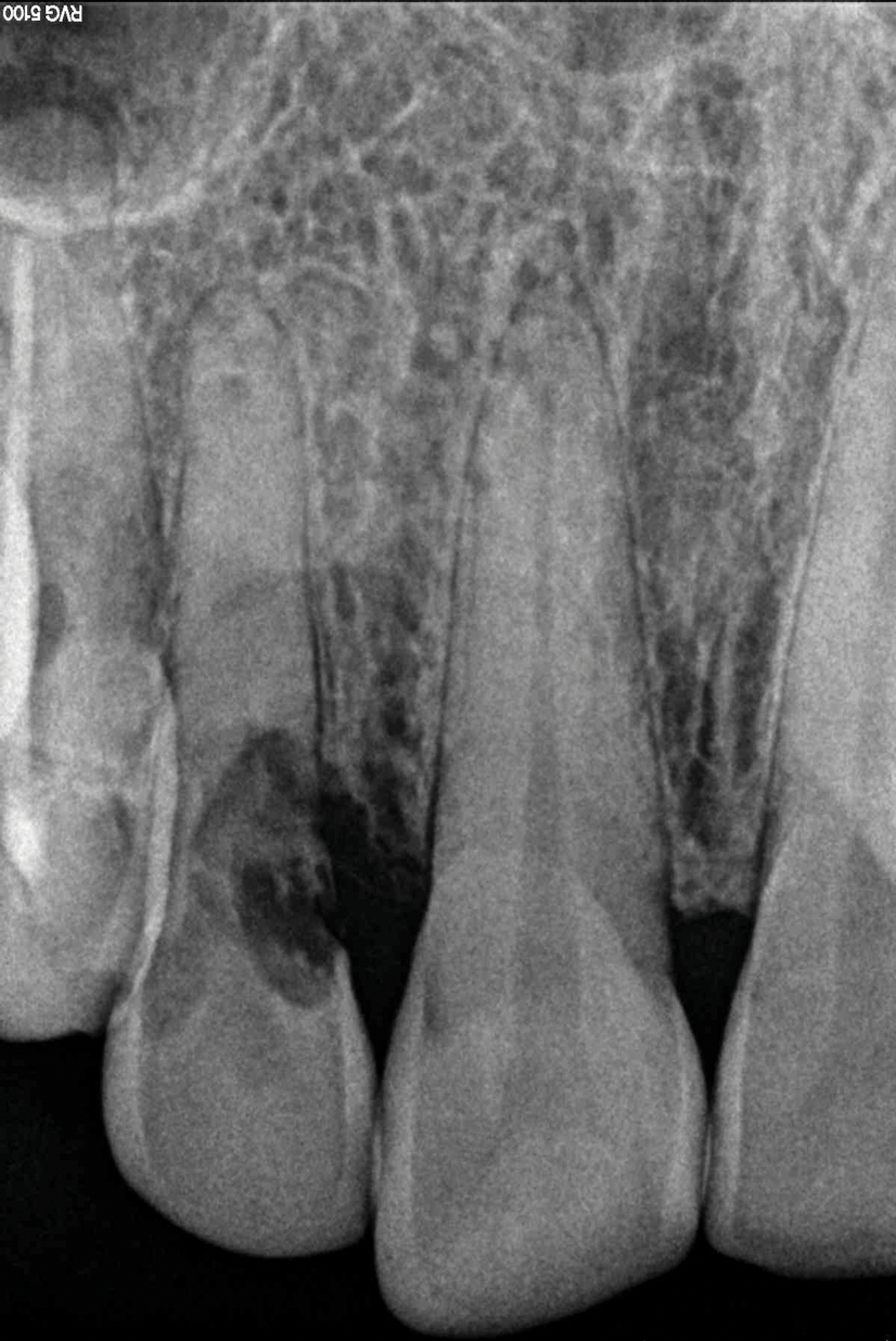 Depending on whether patients present with an existing edentulous space or a non-restorable tooth requiring extraction, as well as other factors, their long-term treatment goals may vary. Nonetheless, each case should be evaluated to identify patients' needs regarding immediate restoration. In the example case presented here, a radiographic examination of a discolored canine lead to the discovery of a lateral incisor (tooth No. 7) with internal resorption that required extraction (Figure 1). The tooth was extracted, and an implant was subsequently placed (Figure 2); however, the patient would be unable to complete the treatment for an extended period of time, so a fiber-reinforced composite bridge was chosen to serve as an ideal long-term provisional replacement option.